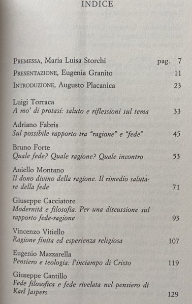 LA FEDE NELLA RAGIONE E LE RAGIONI DELLA FEDE. A CURA DI EUGENIA GRANITO