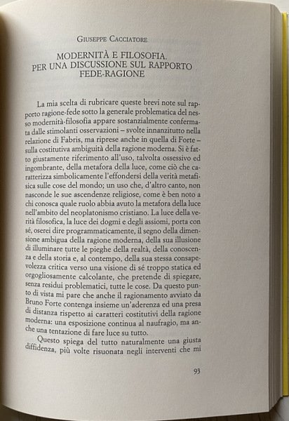 Giuseppe Cacciatore, Modernità e filosofia. Per una discussione sul rapporto fede-ragione