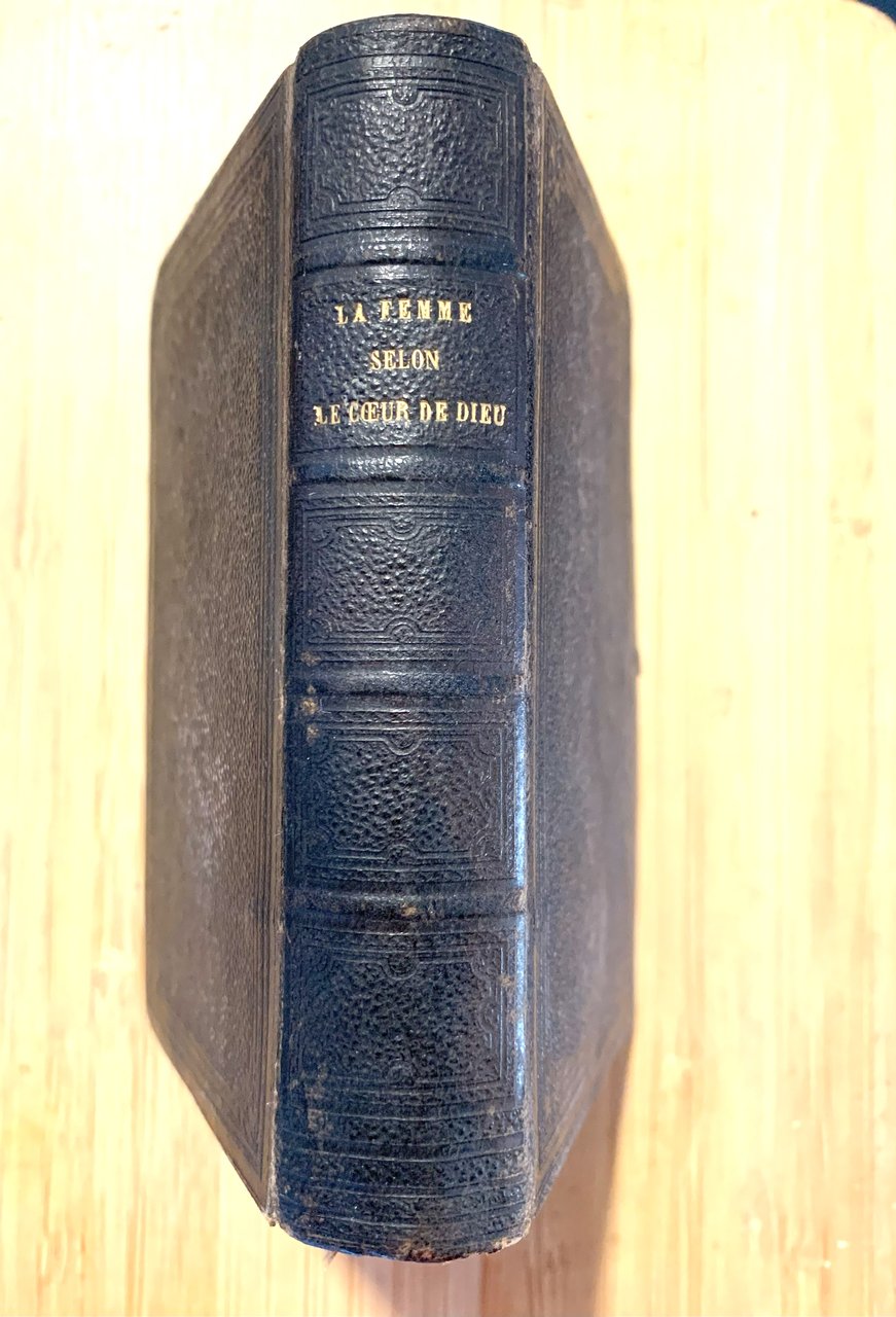 I ed., approuvé par Mgr. l'Évêque de Dijon. Testo in francese. XXIV/ (2)+544 con tagli dorati/ rilegatura in pelle marrone con titoli dorati al dorso. In antiporta tavola incisa in nero (Mater Dolorosa, N^. 18). Sguardie perlacee e segnalibro in raso dorato. Stato buono (leggera usura della copertina - pagine lievemente brunite). Table: Aux Femmes chrètiennes - Journée de la Femme chrétienne.