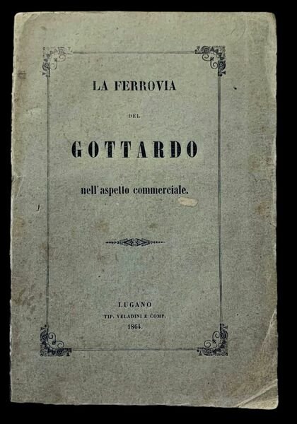 In 8°; (2), 130, 13, (1) pp. ed una grande c. di tav. più volte ripiegata con le tratte ferroviarie del nord Italia e di una parte d’Europa. Brossura editoriale con titolo in nero entro cornice al piatto anteriore. Al piatto posteriore piccola immagine di treno entro cornice. Importante studio che analizza la possibilità e gli eventuali risvolti economici della realizzazione di un collegamento Svizzera-Italia. Il progetto prevedeva che la ferrovia dovesse collegare l’Italia con la Svizzera, attraverso il Gottardo. La possibilità di questo collegamento venne fortemente caldeggiata da Carlo Cattaneo che preferiva questa possibilità ad un collegamento attraverso il Lucomagno (si era ipotizzata anche l’alternativa dello Splüga). Il maestoso traforo che si sarebbe poi finito e realizzato solo nel 1882, fu una delle imprese ingegneristiche più importanti del XIX° secolo che partecipò, insieme al canale di Suez a far comprendere le enormi capacità ingegneristiche che si stavano sviluppando in quegli anni. “Nell’ambito delle discussioni preliminari sulle opzioni del tracciato – che negli anni 1860-1866 spaziavano dal Sempione al Lucomagno, fino allo Spluga – la voce dell’Italia fu determinante. “La spinta decisiva – ha osservato lo storico Carlo Moos, dell’Università di Zurigo – fu la presa di posizione del governo italiano. Importantissima, inoltre, l’attività e l’impegno di Carlo Cattaneo, sempre presente sulla scena italiana pur essendo esiliato in Ticino”. La figura di Carlo Cattaneo, non l’unica di primo piano nella storia di questa grande opera, è stata anche ricordata dal professor Alberto Gabba, del Politecnico di Milano: “È noto che la prima idea di un valico ferroviario al Gottardo sia stata manifestata da Alfred Escher, fondatore del Credito svizzero e del Politecnico federale. Ma altri quattro personaggi giocarono un ruolo certo, tra cui Carlo Cattaneo, che procedeva nell’idea di collegare Genova e Zurigo, precisamente attraversando il Gottardo”.” (tratto da https://www.swissinfo.ch/ita/san-gottardo). Prima edizione in buone-ottime condizioni di conservazione completa della grande carta più volte ripiegata, posta in fondo al volume. Rif. Bibl.: IT\ICCU\SBL\0062946.