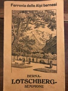 Guida illustrata all'Oberland Bernese per la ferrovia del Lotschberg. Con molte ill. in b/n. e una cartina a col. piu' volte ripiegata a fine volume. Pagg. 49 piu' alcune pagine pubbl.Brossura edit. ill Mis mm 185x120