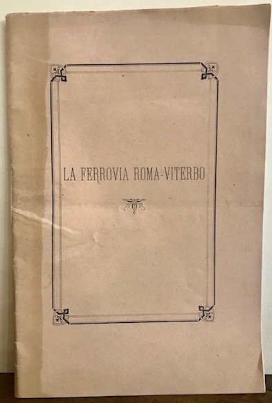 4to (cm. 29), 26 pp. Con una carta litografica più volte ripiegata in fine (’Planimetria della linea ferroviaria Roma-Viterbo per Ronciglione e Vetralla’). Brossura editoriale. Ottimo esemplare.