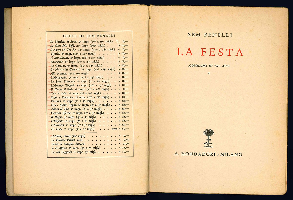 La festa. Commedia in tre atti.
