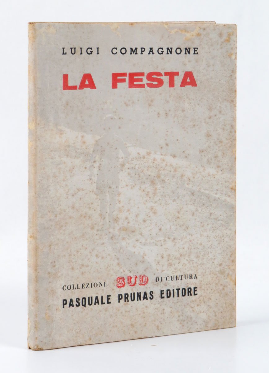 LIBROPrima edizione.Fioriture alla sovracoperta, per il resto un più che buon esemplare di questo raro libro.Rara opera prima e contemporaneamente esordio dei quaderni della rivista «Sud», punto di riferimento meridionale per la gioventù modernista nell’immediato dopoguerrra: «Con questa collana apriamo il nostro contrabbando d’amore per la poesia». Nelle pagine editoriali aggiunte in fine, il manifesto «Per una cultura meridionale». Il motore dell’operazione è Pasquale Prunas, a cui tra gli altri ha dedicato pagine pregnanti Raffaele La Capria in «Napolitan Graffiti», definendolo «grande architetto della pagina di giornale»: «Il terzo numero di “Sud” si apriva con una poesia di Compagnone di cui nessuno di noi è più riuscito a dimenticare il primo verso, una poesia [.] che cominciava così: Questa è la mia città senza grazia. | Qui gli uomini vivono dannati | in una feroce tristezza [.]. Ma ciò che faceva la vera anticipatrice qualità [.] di “Sud” era la straordinaria modernità del materiale fotografico, e soprattutto dell’impaginazione. Bisognerebbe ricordarlo questo, oggi, perché è stato forse proprio qui che si è espresso al meglio il genio giornalistico di Pasquale Prunas: ed è anche per come era fatto, forse più ancora che per come era scritto, che «Sud» meriterebbe di essere ricordato».