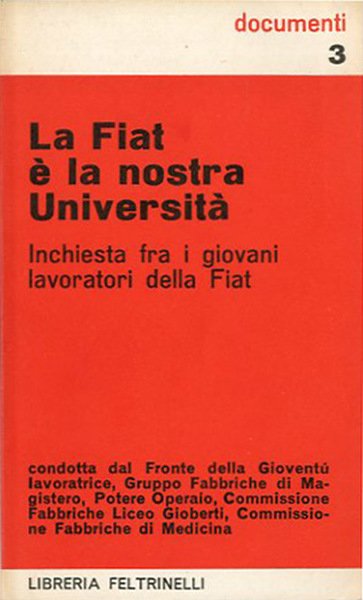 82 p. ; 18 x 11 cm. Documenti. In cop.: Inchiesta condotta dal Fronte della Gioventù Lavoratrice, Gruppo Fabbriche di Magistero, Potere Operaio, Commissione Fabbriche Liceo Gioberti, Commissione Fabbriche di Medicina. Brossura editoriale, coperta in cartoncino flessibile di colore rosso. Leggero ingiallimento del taglio e delle pagine per la qualità della carta. Codice libreria 2044.