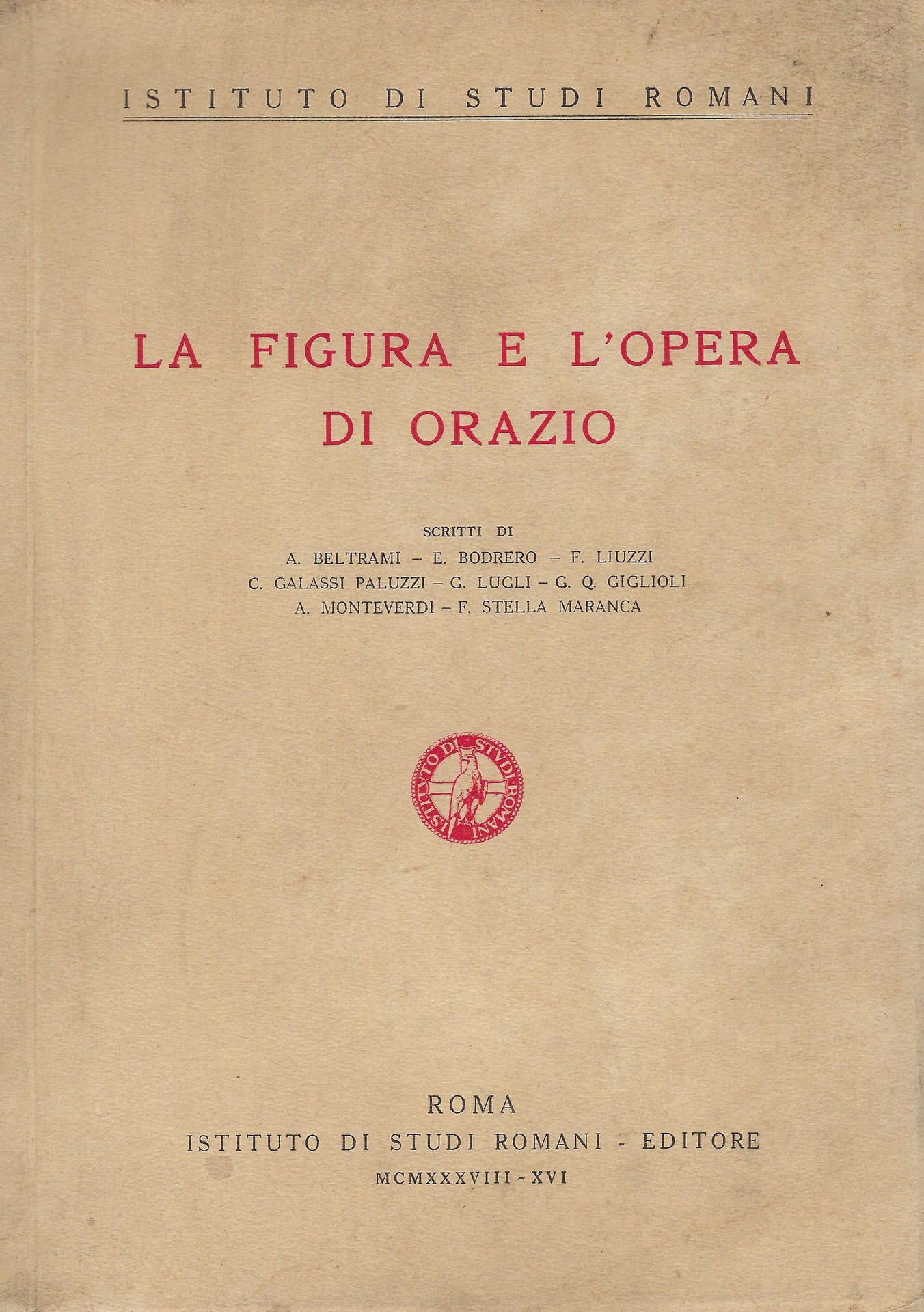 Istituto di studi romani, 1938. Collana Istituto di Studi Romani. Scritti di A. Beltrami, E. Bodredo, F. Liuzzi.., 135 pp. brossura Buono (Good) buone.