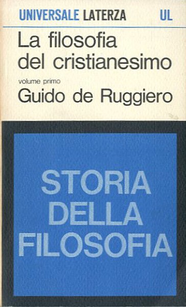 8. ed. 2 v. (717 p.) ; 18 x 11 cm. Universale Laterza. Il volume, il secondo della imponente «Storia della filosofia» di de Ruggiero, descrive con somma sapienza l'origine e lo sviluppo della filosofia del cristianesimo. . Brossura editoriale, coperta illustrata a colori in cartoncino flessibile con titolo impresso in nero al piatto e al dorso. Qualche lieve segno del tempo alla coperta, al dorso e al taglio (ingiallimento) per il resto buon esemplare. All'interno sottolineature a matita ma nel complesso buon esemplare. Nel front. firma ms. di appartenenza. Codice libreria 3254.