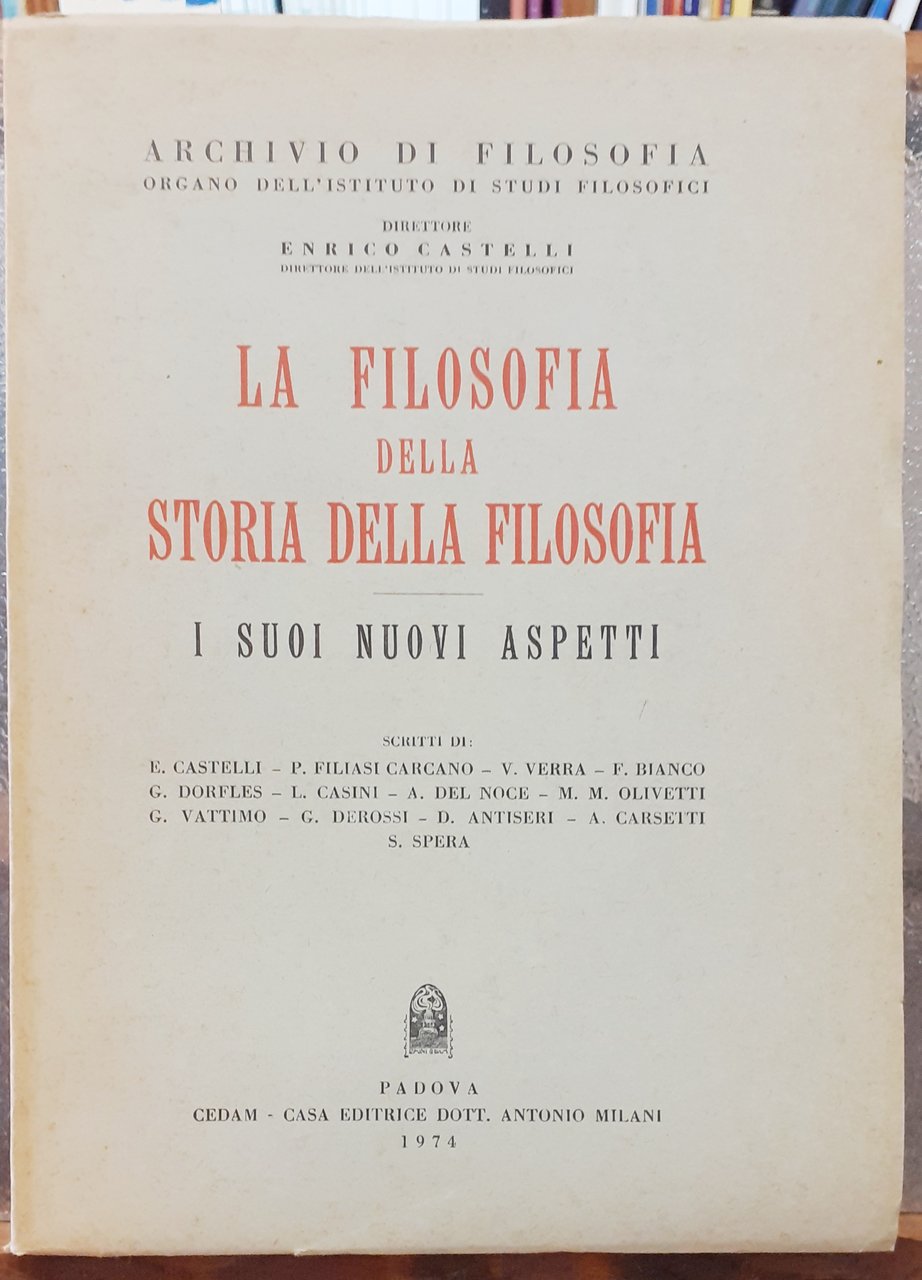 LA FILOSOFIA DELLA STORIA DELLA FILOSOFIA: I SUOI NUOVI ASPETTI. Archivio di Filosofia., Scritti di : Castelli, Filiasi, Carcano, Verra, Bianco, Dorfles, Casini, Del Noce.