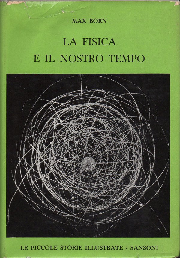 In-16° (16,6 x 11,2 cm), pp. 409, (7), legatura editoriale con sovraccoperta illustrata. Tracce d'uso e del tempo alla sovraccoperta, in particolare, ai margini, alcuni piccoli strappi, ben rimarginati con filmoplast applicato nella parte interna, e qualche piccola mancanza. Con sedici tavole fuori testo (otto fogli impressi recto/verso) ospitanti ritratti, fotografici e non, in bianco e nero, di fisici illustri. Rari, piccolissimi segni d'umido al taglio di testa. Margini delle tavole fuori testo leggermente ingialliti. Per il resto, ben conservato. Indice. Premessa. Capitolo I. Introduzione: da La teoria della relatività di Einstein (1921). Capitolo II. Meccanica quantica e statistica. Capitolo III. Sul significato dei processi d'urto per la comprensione della meccanica quantica. Capitolo IV. Sul significato delle teorie fisiche. Capitolo V. Considerazioni filosofiche sulla fisica moderna. Capitolo VI. Causa, finalità ed economia nelle leggi naturali (Il principio di minimo nella fisica). Capitolo VII. Teorie statistiche di Einstein. Capitolo VIII. Fisica e metafisica. Capitolo IX. La situazione concettuale nella fisica. Capitolo X. La interpretazione della meccanica quantica. Capitolo XI. Realtà fisica. Capitolo XII. La meccanica classica è effettivamente deterministica? Capitolo XIII. Reminiscenze di astronomia. Capitolo XIV. La interpretazione statistica della meccanica quantica. Capitolo XV. Fisica e relatività. Capitolo XVI. Sviluppo e stato dell'era atomica. Capitolo XVII. All'inizio del 1955. Capitolo XVIII. Albert Einstein e il quanto di luce. Capitolo XIX. Ricordi di Einstein. Capitolo XX. Dal poscritto del libro «L'universo in movimento» (1951). Bibliografia. Indice delle illustrazioni.