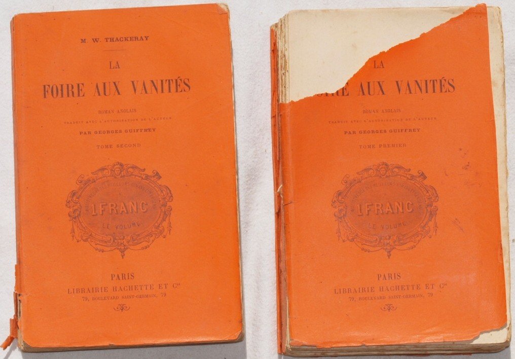 In 8. Dim. 19x12 cm. Pp. II+398, 446. Edizione del 1895 di questa interessante opera di William Makepeace Thackeray (1811-1863) scrittore inglese Thackeray è noto per le sue opere satiriche in particolare per "La fiera delle vanità" nella quale delinea i tratti della società londinese a lui contemporanea. L'opera è formata da due volumi ed è compelta. In discrete condizioni. Brossura editoriale in mediocri condizioni generali con lievi usure e parti mancanti ai margini e dorso; piatto anteriore del tomo primo quasi staccato. Legatura in discrete condizioni con rotture. All'interno le pagine si presentano in ottime condizioni con rare fioriture. Edition of 1895 of this interesting work by William Makepeace Thackeray (1811-1863) english writer. Thackeray is famous for his satyrical works in particular for "La fiera delle vanità" in which he delineates the carachteristics of contemporary english society. The work is made up of two volumes and it is complete. In fair conditions. Editorial cover in poor general conditions slightly worn with missing parts in the edges and spine; front plate of the first tome is partially detached. Binding in fair conditions with cracks. Inside pages are in very good conditions with occasional foxings.