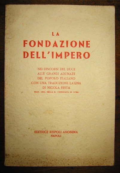 La fondazione dell’Impero nei discorsi del Duce alle grandi adunate del popolo italiano con una traduzione latina di Nicola Festa Prof. Ord. della R. Università di Roma
