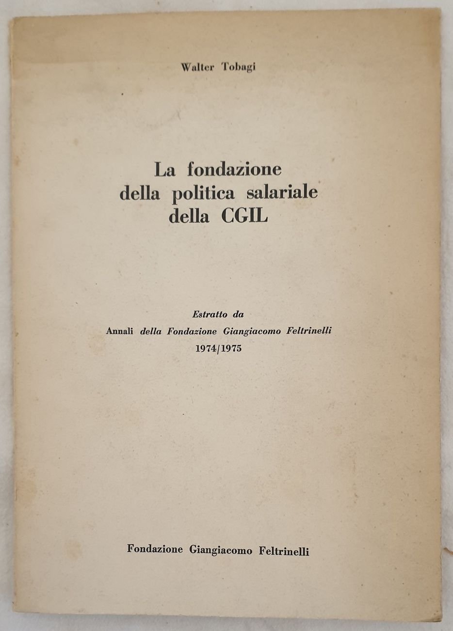 Pubblicazione del 1975 sulla fondazione della politica salariale della CGIL. Estratto da Annali della Fondazione Giagiacomo Feltrinelli 1974/75. In ottime condizioni. Coperta editoriale in buone condizioni generali con lievi usure marginali. Legatura in buone condizioni. All'interno le pagine si presentano in buone condizioni con fioriture. In 8. Dim. 24x17 cm. Pp. da 409 a 446. Pamphlet of 1974 about establishment of salary policy of CGIL. Extract from Annali della Fondazione Giagiacomo Feltrinelli 1974/75. In very good conditions. Editorial cover in good general conditions lightly worn in the extremities. Binding in good conditions. Pages are in good conditions with foxing. In 8. Dim. 24x17 cm. Pp. from 409 to 446