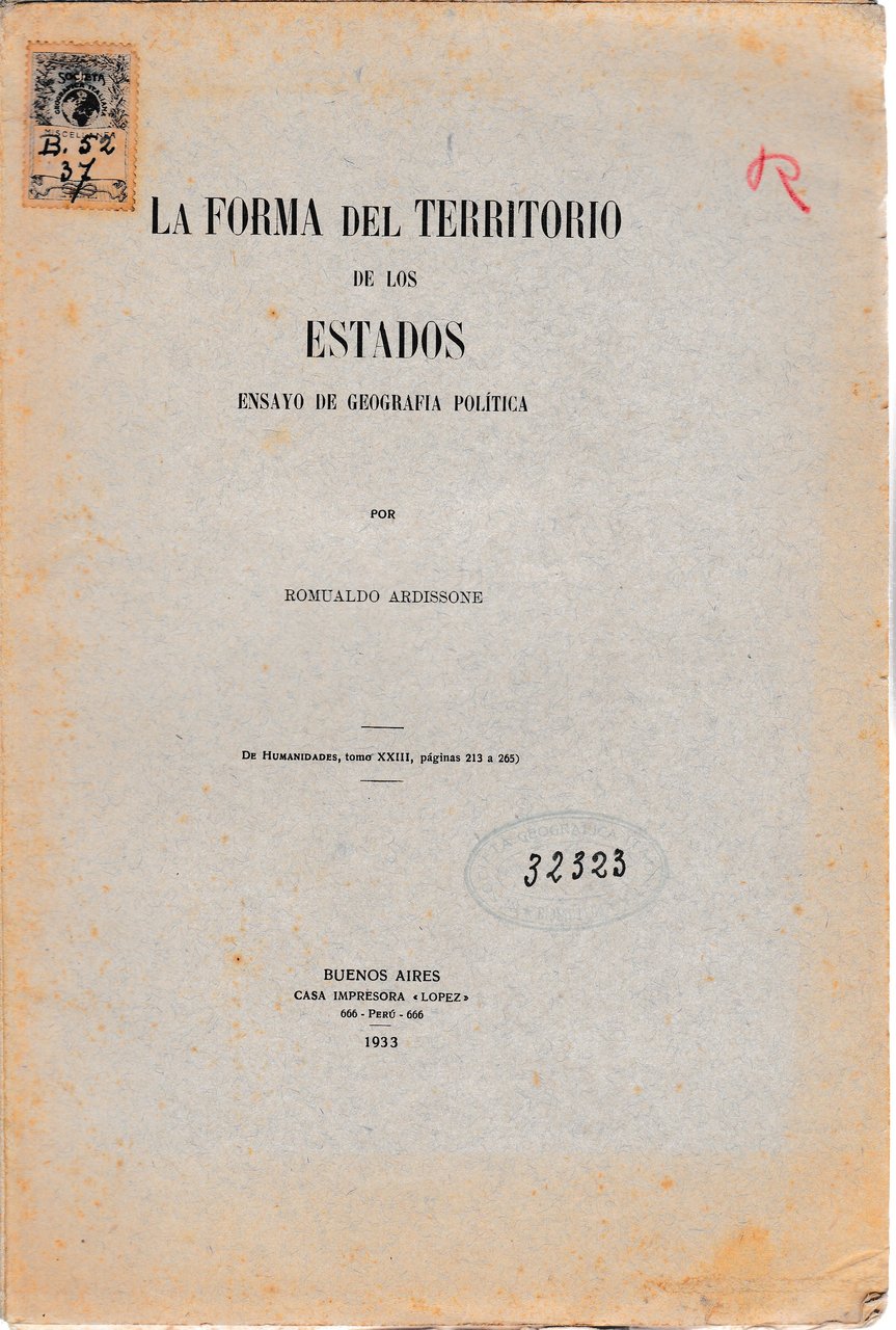 La forma del territorio de los estados. Ensayo de geografia polìtica
