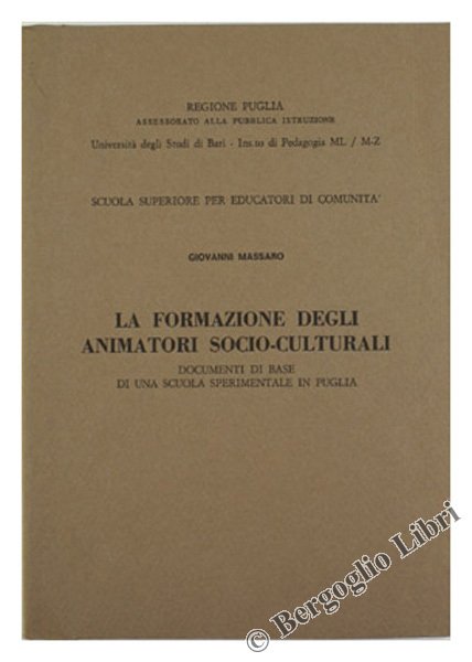 LA FORMAZIONE DEGLI ANIMATORI SOCIO-CULTURALI. Documenti di base di una scuola sperimentale in Puglia.