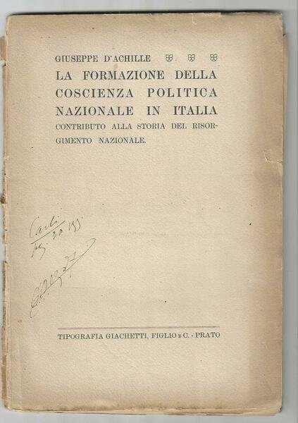 "La formazione della coscienza politica nazionale in Italia" contributo alla storia del Risorgimento nazionale