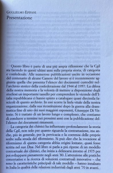 Soggetti: Economia, Diritto del lavoro, Politica economica, Diritti sociali, Vertenze, Sindacalismo, Industria, Studi industriali, Industrie manifatturiere, Industrie chimiche, Chimica, Contrattazione collettiva, Contratti, Operai, Storia economica, Dopoguerra, Sindacati, Relazioni sindacali, Anni Sessanta, Anni Settanta, Anni Ottanta, Anni Novanta, Lavoratori chimici, CGIL, CISL, UIL, Rappresentanza sociale, Conquiste salariali, Lotta di classe, Partito comunista, PCI, PSI, Capitalismo, Aziende italiane, Scioperi, FILCEA, Interviste, Memorie, Documenti, Interventi, Sindacalisti, Lotta politica, Rivendicazioni, Balduzzi, Messina, Di Francia, De Cesaris, Fausto Vigevani, Piero Boni, Bruno Cipriani, Franco Chiriaco, Segreterie nazionali, Cronologia, Congressi, Rinnovi contrattuali, Libri Vintage, Fuori catalogo, Bibliografia, Concertazione, Fondazione Giuseppe Di Vittorio, Vetro, Ceramica, Petrolieri, Cultura contrattuale, Maria Luisa Righi, Ornella Cilona, Fabbriche, Economy, Labor Law, Economic Policy, Social Rights, Disputes, Trade Unionism, Industry, Industrial Studies, Manufacturing Industries, Chemical Industries, Chemistry, Collective Bargaining, Contracts, Workers, Economic History, Postwar Period, Trade Unions, Union Relations, Sixties, Years Seventies, Eighties, Nineties, Chemical workers, Social representation, Wage earning, Class struggle, Communist party, Institutions, Speeches, Trade unionists, Political struggle, Claims, National secretariats, Chronology, Congresses, Contractual renewals, Out of print books, Bibliography, Concertation, Glass, Ceramics, Oilmen, Contract culture, Factories, Italy, Italian society