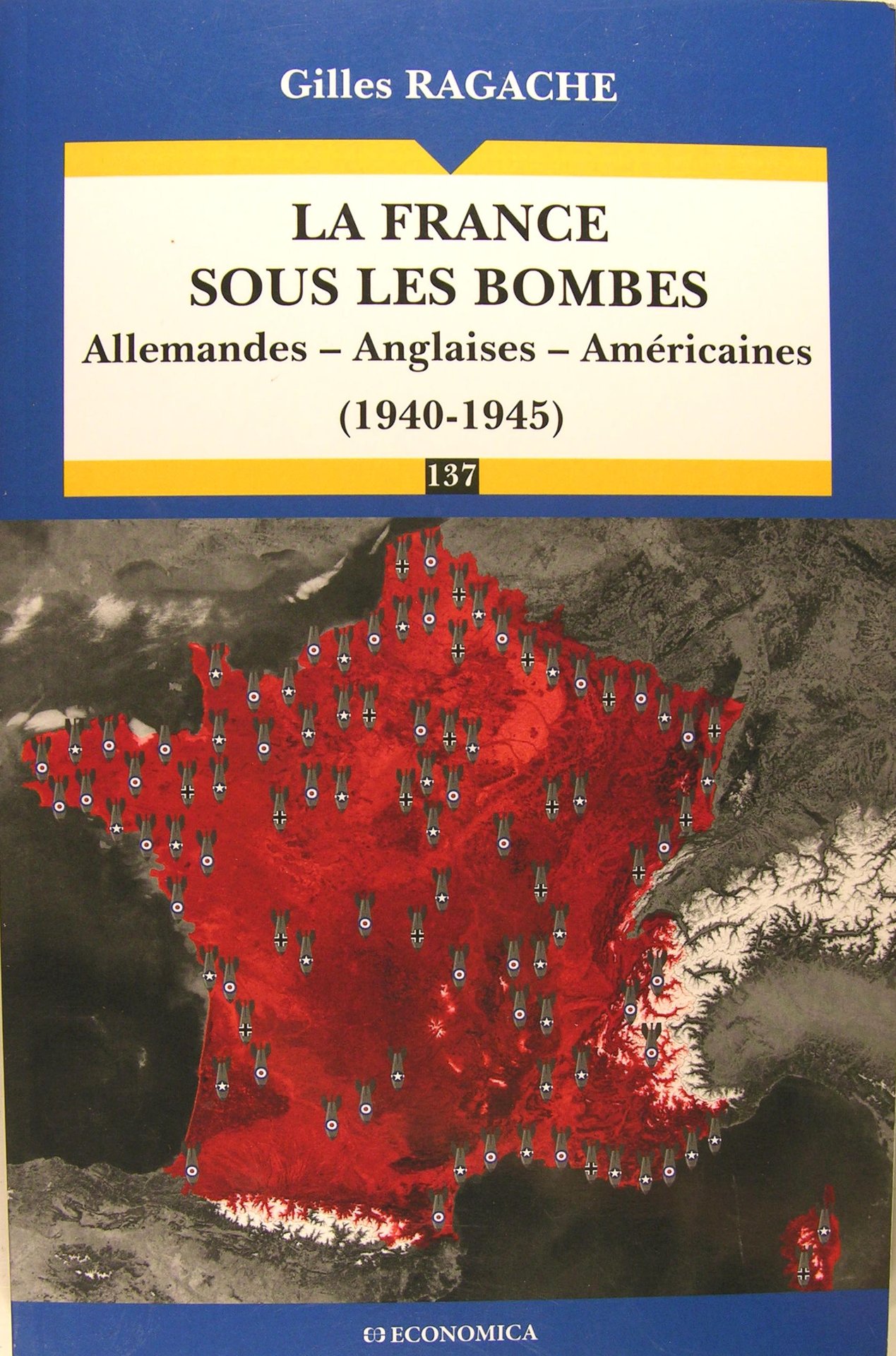 Economica, 2019, in/8 broché, 144 pages. "De 1940 à 1945 la France fut lourdement bombardée, d abord par l aviation allemande qui aidait à la progression de ses troupes, détruisant nombre de villes et de villages de la frontière belge jusqu à la Loire. Dès l été 1940, la RAF prit la relève, tout d abord contre les ports de la Manche et de l Atlantique, puis jusqu à l été 1942, sur diverses villes de la Zone occupée dont Billancourt ou Le Creusot. À partir de l automne 1942 et de l occupation de la Zone libre, la France entière devint de nuit la cible des escadres de la RAF et, de jour, celle d escadres américaines de plus en plus puissantes qui, en une ronde incessante, tournèrent jusqu au printemps 1944. À cette époque, la France fut l objet d un pilonnage effrayant censé aider à la préparation des débarquements de Normandie et de Provence. Très vite des villes comme Saint-Lô ou Saint-Cyr ne furent plus que flammes et cendres. Bientôt ce déluge de feu s étendit à des villes du Midi jusque-là épargnées, telles que Avignon, Nîmes, Arles ou Marseille. Ni la banlieue parisienne ni le Nord ne furent à l abri. La Libération de Paris et d une grande partie de la France ne mit hélas pas fin au calvaire des civils. La ville du Havre fut alors totalement détruite tandis que Royan était rasée en 1945 à coup de bombes incendiaires, et même de bombes au napalm utilisées pour la première fois de la guerre par l USAAF. Pour ne rien arranger, de septembre 1944 à janvier 1945, les Allemands lancèrent sur la région parisienne et le Nord des centaines de fusées V1 et des dizaines de V2. Pendant cinq ans c est donc un déluge de fer et de feu qui a accablé la population française, tuant plusieurs dizaines de milliers de personnes, hommes, femmes et enfants confondus, et en blessant beaucoup plus encore. Un traumatisme profond dont la France n est pas encore totalement remise."