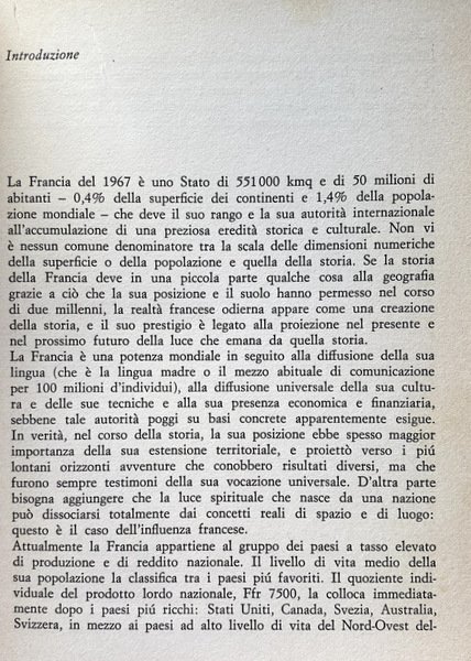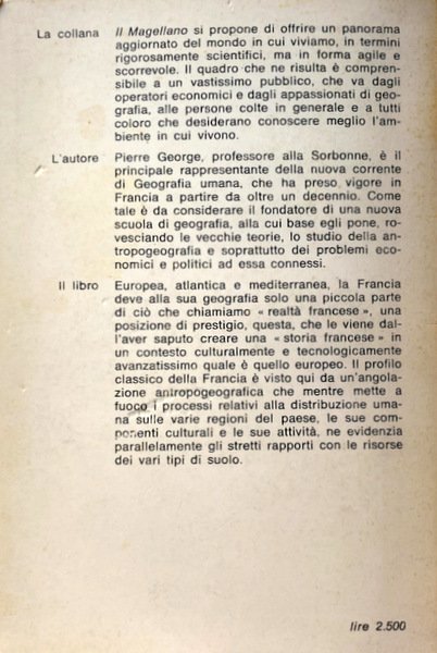 Soggetti: Geografia economica, Francia, Sviluppo economico, Scienze sociali, Classici, Sociologia, Studi economici, Studi geografici, Economia politica, Risorse energetiche, Materie prime, Energia, Topografia, Commercio estero, Esportazioni, Importazioni, Popolazione, Urbanesimo, Densità di popolazione per dipartimenti e città, Agricoltura, Attività agricole, Alpi, Territorio, Trasporti, Fattorie, Aziende, Produzione, Mercato, Latte, Vino, Enologia, Coltivazioni, Champagne, Reno, Fiumi, Acqua, Vigneti, Alsazia, Lorena, Bordeaux, Agglomerati urbani, Dopoguerra, Turismo, Regioni, Loira, Bretagna, Piccardia, Linguadoca, Provenza, Aquitania, Rodano, Distretti industriali, Miniere, Giacimenti, Normandia, Alvernia, Franca Contea, Fiumi, Chimica, Consumo, Franchi, Franco, Automobili, Parigi, Decentramento, Ottocento, Novecento, Schéma directeur, Costa, Salariati, Aeronautica, Industria aerospaziale, Paesi avanzati, Europa occidentale, Reddito pro capite, Anni Cinquanta, Anni Sessanta, Anni Settanta, Densità, Manuali, Riferimento, Consultazione, Libri Vintage Fuori catalogo, Paesaggio, Carbone, Gas, Giacimenti, Geographie économique sociale de la France, Densité de population par départements et villes de plus, Les composantes naturelles et historiques, Échanges commerciaux avec l'étranger, Magellan, la Géographie et ses Problèmes, La région parisienne, Rhénan, Rhône, Oceano, Mediterraneo, Economic geography, Economic development, Social sciences, Classics, Sociology, Economic studies, Geographical studies, Political economy, Energy resources, Raw materials, Energy, Topography, Foreign trade, Exports, Imports, Population, Urbanism, Population density by department and cities, Agriculture, Agricultural activities, Alps, Territory, Transport, Farms, Companies, Production, Market, Milk, Wine, Enology, Crops, Champagne, Rhine, Rivers, Water, Vineyards, Alsace, Lorraine, Urban agglomerations, Post-war, Tourism , Regions, Loire, Brittany, Picardy, Languedoc, Provence, Aquitaine, Rhone, Industrial districts, Mines, Fields, Normandy, Auvergne, Franche-Comté, Rivers, Chemistry, Consumption, Franks, Cars, Paris, Decentralization, Nineteenth century, Twentieth century, Coast, Wage earners, Aeronautics, Aerospace industry, Advanced countries, Western Europe, Per capita income, Fifties, Sixties, Seventies, Density, Manuals, Reference, Consultation, Out of print books, Landscape, Coal, Deposits, Ocean, Mediterranean