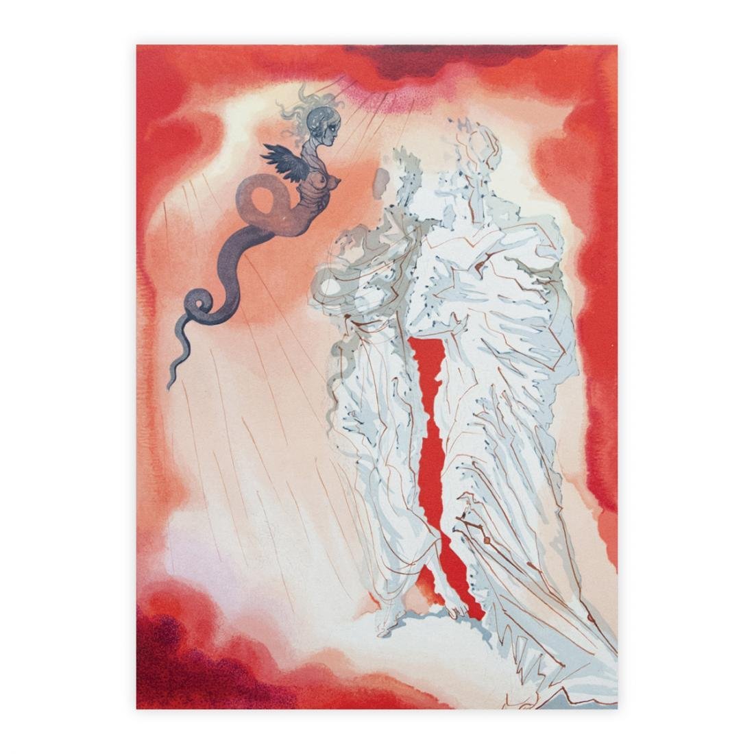 “Ecco la fiera con la coda aguzza,che passa i monti e rompe i muri e l’armi;ecco colei che tutto ‘l mondo appuzza!” (Canto XVII) Salvador Dalì La Divina Commedia - InfernoDimensioni folio cm 33 x 26Supporto > Xilografia Originale - 1960Provenienza > La Divine comédie, Edizioni D'Art Les Heures claire rue Bonaparte 19 Parigi 1959-1963La tavola in vendita è completa di passepartout pronta per essere incorniciata, è in perfette condizioni generali.Certificato di Autenticità (C.O.A.) allegato.