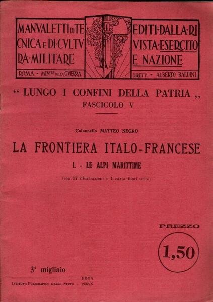 "La frontiera italo-francese. Le Alpi Marittime", edizione 1932, pp. 39, formato 17 x 24.
