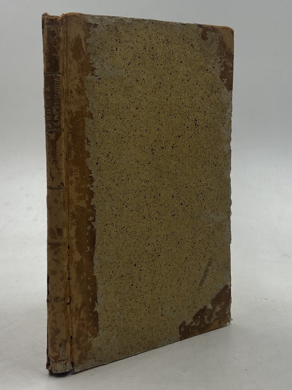 Legatura coeva in mezza pelle, in modesto stato di conservazione (pelle sbucciata, piccole mancanze, fori di tarlo sulla cerniera posteriore), 8vo cm12.5x17.5, pp (8) 103 (1). Edizione originale di questo libello polemico contro la Frusta Letteraria di Baretti (1763-1765) e la teoria della pluralità dei mondi, pubblicato anonimo in forma epistolare dal veneziano Giuseppe Antonio Costantini, che Baretti aveva posto nella Frusta tra gli “scrittori collitorti”. Per l’identificazione dell’autore vedi Melzi, I p. 432.