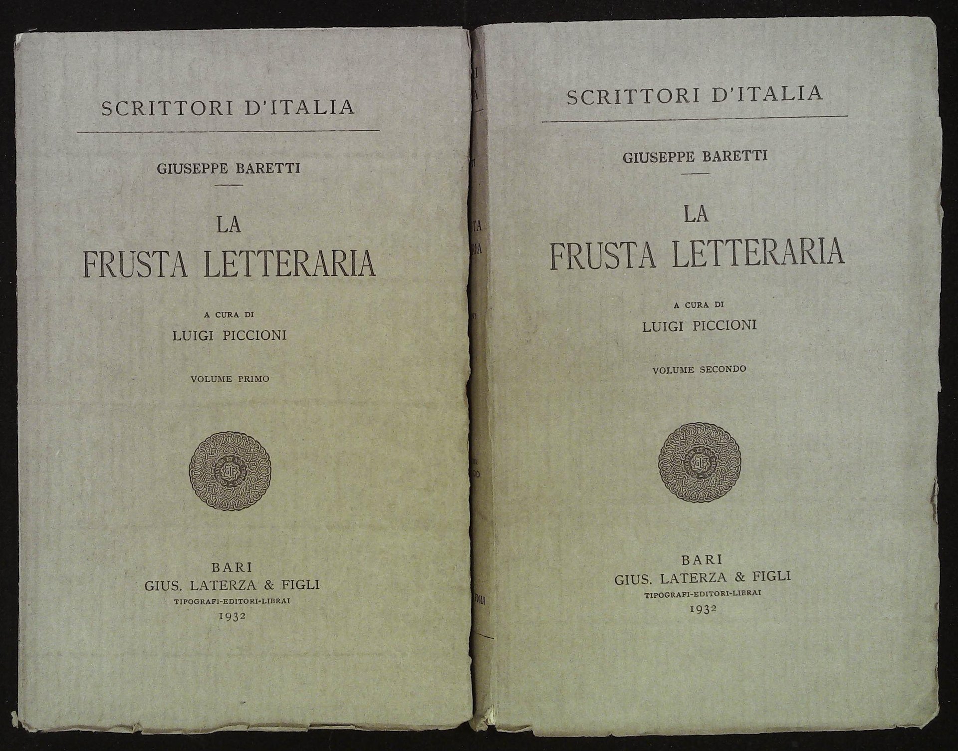 in 8° bross. ed. pp. 430 / 467 coll. Scrittori d'Italia n° 138 / 139 / Opere di Giuseppe Baretti n° III / IV A cura di Luigi Piccioni. In buono stato (B9)