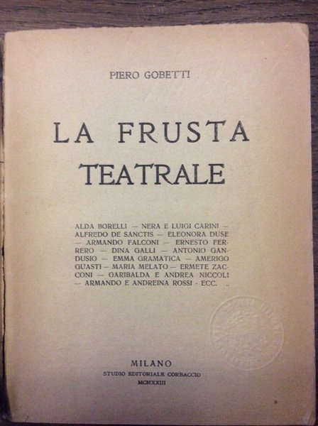 In-16 gr., brossura orig. (picc. manc., con restauri), pp. 158. "Prima edizione". Con ingialliture per la qualità della carta; restauro a p. 22 per strappo, altrimenti buon esemplare.