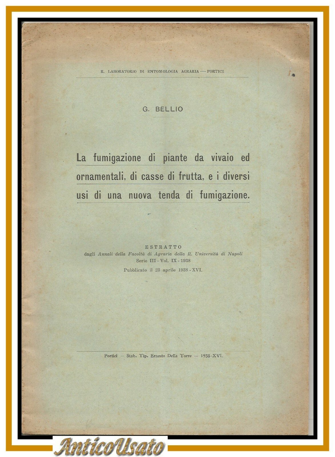 LA FUMIGAZIONE DI PIANTE DA VIVAIO ED ORNAMENTALI FRUTTA di Bellio 1938 libro