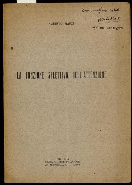 Opuscolo Vintage. Estratto dall’Archivio Italiano di Psicologia Vol.IX – Fasc. III – Anno 1931, nota in copertina e all’interno. Piega centrale. Ordinario segno del tempo.