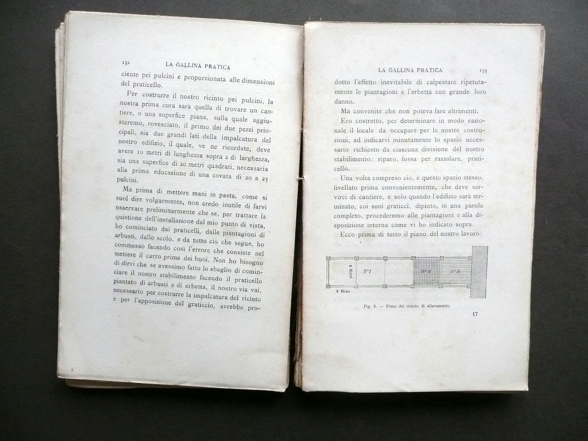 E. Leroy, La Gallina Pratica di un pratico scelta delle razze pratiche: 1° pel podere; 2° pel recinto Modo pratico di trar profitto del pollame: installazione - deposizione delle ova - covatura - educazione dei polli Libreria Editrice Brero, Torino 1886; cm 19x12; pp. 306 con 41 figure in b/n nel t.; brossura ed. ill. in b/n. Brossura ant. con applicata etichetta del precedente libraio rivenditore (vedi foto). Condizioni di conservazione Esemplare complessivamente ben conservato con tracce d'uso e alcune piccole leggere bruniture, margini delle brossure con qualche minuscolo strappetto; dorso fessurato e con qualche mancanza, con conseguente parziale sfascicolazione dell'esemplare e allentamento delle cuciture. Interni buoni. Prima traduzione italiana del 1886, con 41 belle figure in bianco e nero nel testo. SETT146.L14048 N