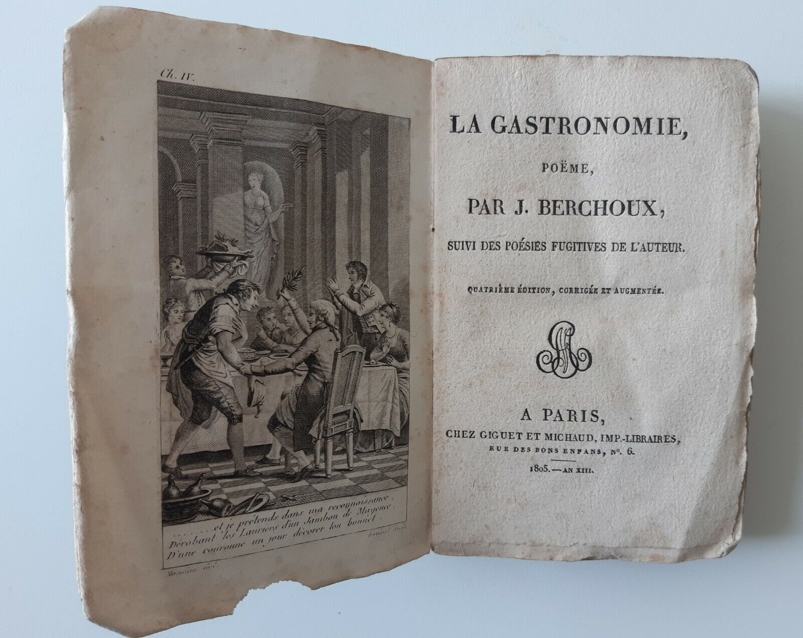 LA GASTRONOMIE POEME PAR J. BERCHOUX SUIVI .... PARIS CHEZ GIGUET & MICHAUD 1805