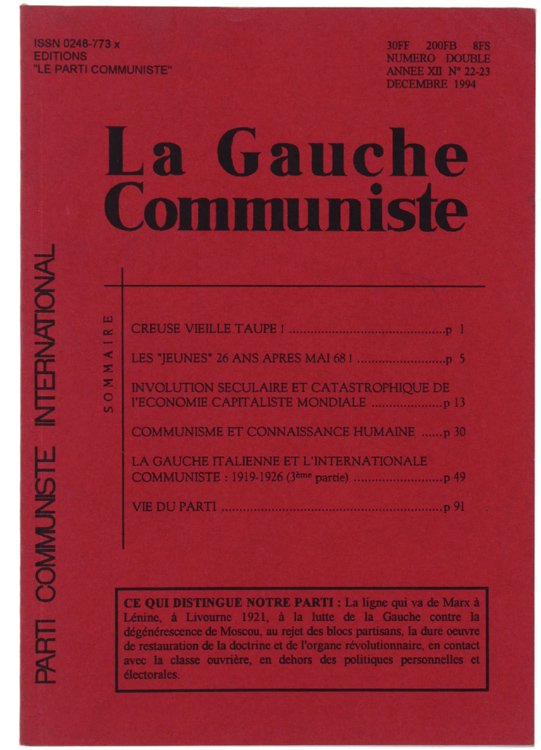 LA GAUCHE COMMUNISTE. Année XII N. 22-23 - Decembre 1994.