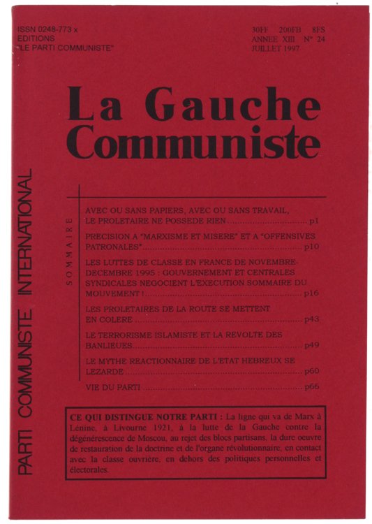 LA GAUCHE COMMUNISTE. Année XIII N. 24 - Juillet 1997.