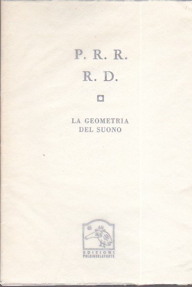Plaquette in-8° piccolo in brossura originale color avorio cucita con filo rosso e protetta da velina incamiciata, contenente un foglio di testo impresso al solo recto ('Il corpo di ogni geometria / è un suono celeste. / Cielo che ruota. / Ruota del cielo. / Segno della mano. / Mano del piede. / Origine del punto') e un'opera originale di Pino Rosa applicata. Perfetto stato. Unica edizione, in tiratura limitata a 55 copie. Plaquette edita in occasione della mostra di Pino Rosa presso la Galleria L'Archivolto. Edizione n. 5720 della 'Pulcinoelefante', casa editrice le cui singolari plaquettes sono sempre state caratterizzate dalla bassissima tiratura.