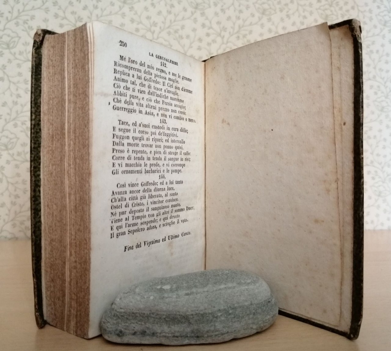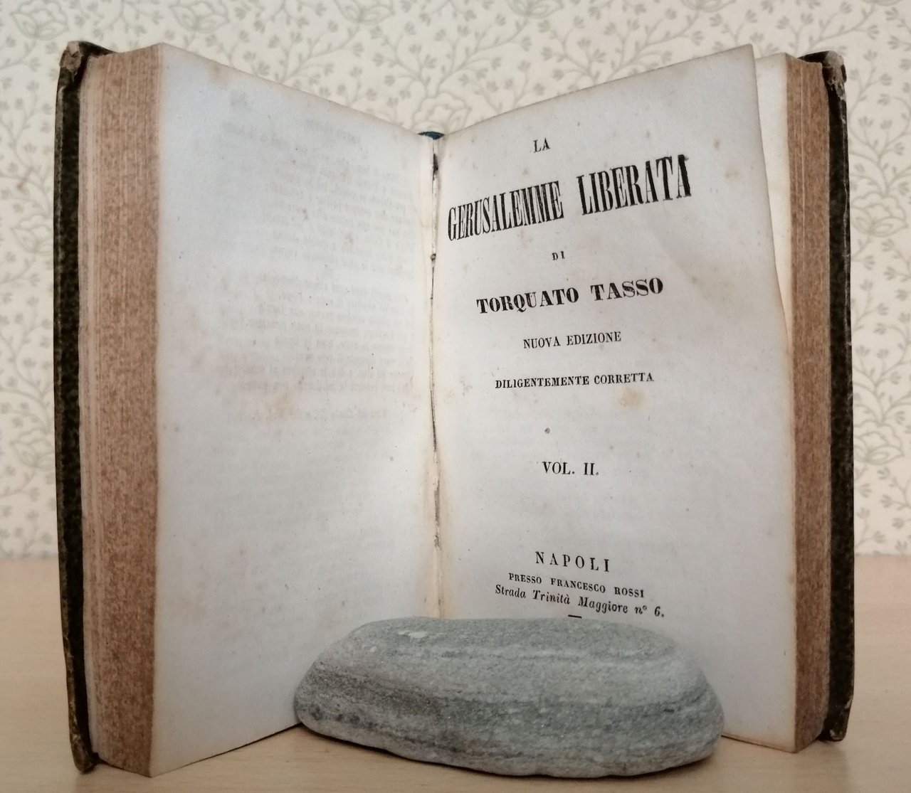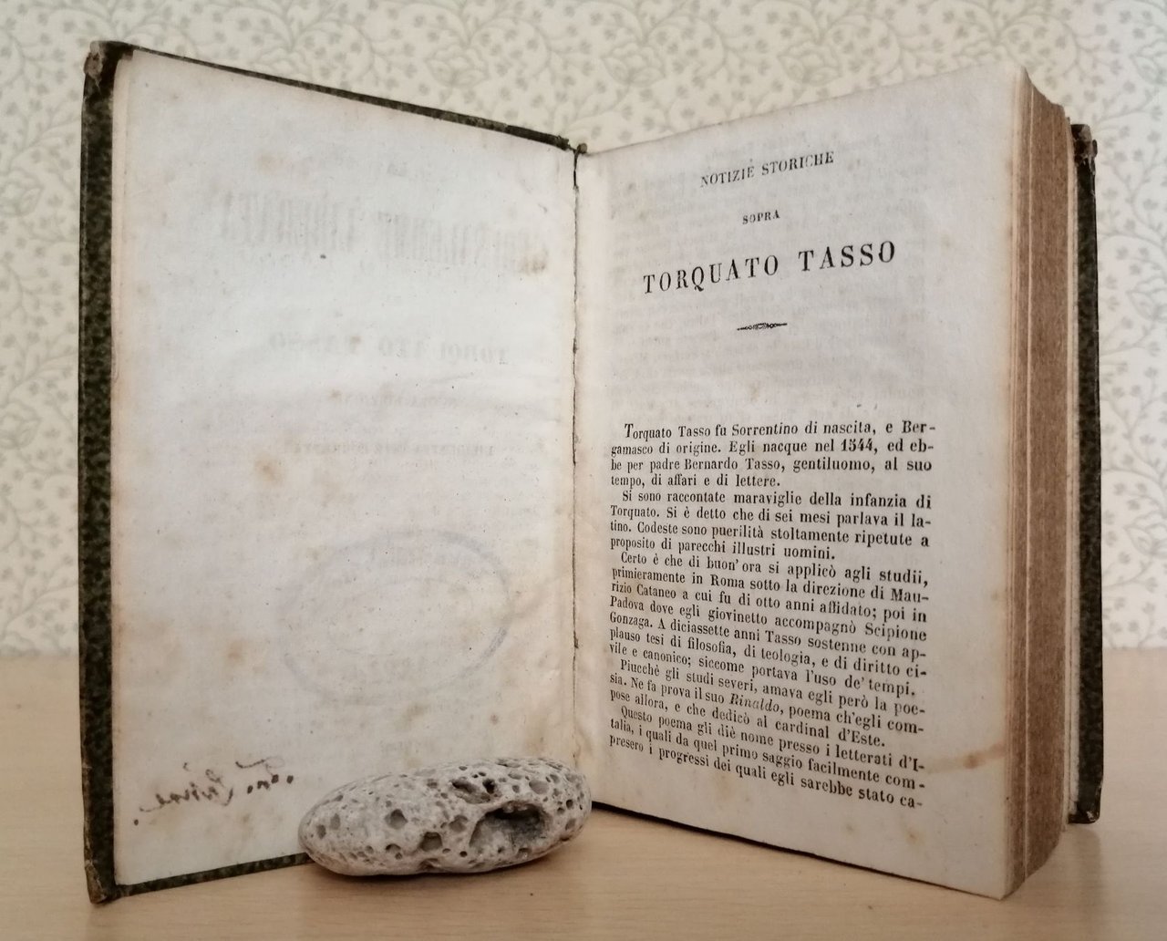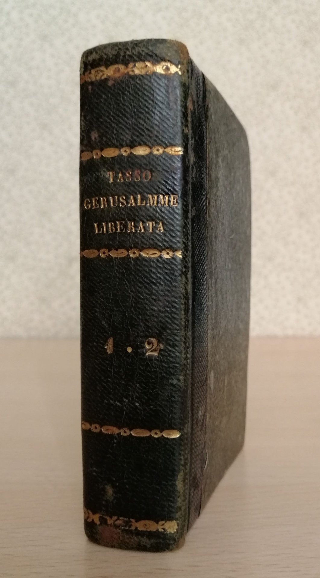 Due tomi in un volume in 12 legato in mezza pelle, titolo al dorso, sguardie,frontespizio, 269, 250 pp. per questa graziosa e filologicamente apprezzabile edizione del capolavoro del Tasso. In pi che bello stato, poco comune