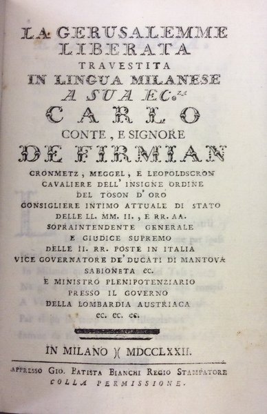 - LETTERATURA ITALIA 1700, DIALETTO MILANESE GERUSALEMME LIBERATA