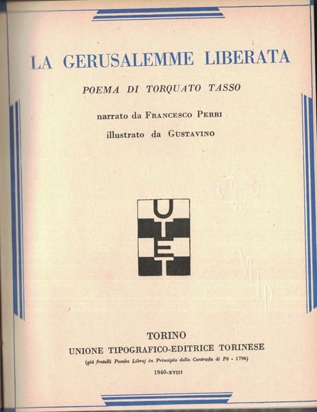La Gerusalemme liberata poema do Torquato Tasso, Narrato da Francesco Perri, Illustrato da Gustavino.