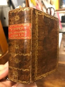 Piccolo formato. 2 tomi in un unico volume. Antiporta figurati ai due frontespizi. Tagli rossi. Fregi oro al piatto e al dorso. Lievi fioriture al secondo frontespizio, piccolissimo forellino di tarlo alla cerniera ant. ma molto buono lo stato di conservazione. Piena pelle coeva con tit. al tassello al dorso. Mis mm 95x65. Pagg. 335, 360.