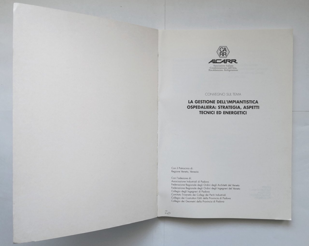 LA GESTIONE DELL'IMPIANTISTICA OSPEDALIERA: STRATEGIA ASPETTI TECNICI ED ENERGETICI. Convegno. Abano Terme 22 giugno 1995.