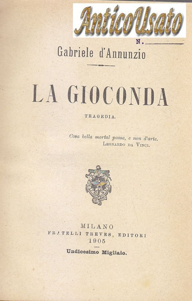 LA GIOCONDA tragedia di Gabriele d'Annunzio 1905 fratelli Treves Libro