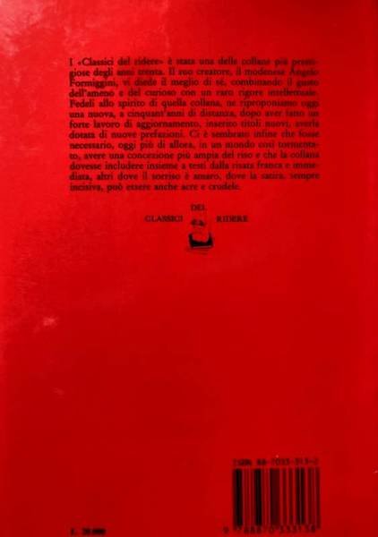 - I «Classici del ridere» è stata una delle collane più prestigiose degli anni trenta. Il suo creatore, il modenese Angelo Formiggini, vi diede il meglio di sé, combinando il gusto dell'ameno e del curioso con un raro rigore intellettuale. Fedeli allo spirito di quella collana, ne riproponiamo oggi una nuova, a cinquant'anni di distanza, dopo aver fatto un forte lavoro di aggiornamento, inserito titoli nuovi, averla dotata di nuove prefazioni. Ci è sembrato infine che fosse necessario, oggi più di allora, in un mondo così tormentato, avere una concezione più ampia del riso e che la collana dovesse includere insieme a testi dalla risata franca e immediata, altri dove il sorriso è amaro, dove la satira, sempre incisiva, può essere anche acre e crudele.