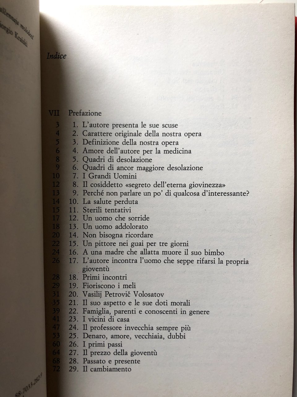 Ritrovare la gioventù? Conservarsi giovani? Ritardare la vecchiaia? Ricorrere ai medici o evitarli come la peste? Come condurre una vita sana e attiva che meriti veramente di essere vissuta? A tutte queste domande, da sempre di attualità e più che mai oggi, in un'epoca di generale incertezza e di nevrosi di massa, si sforza di rispondere un grande umorista sovietico, con i mezzi che gli sono congeniali e cioè con una storia godibilissima e ironica, ma a tratti anche con la massima serietà: convinto di poter offrire, con i suoi consigli e gli esempi tratti dalle vite di uomini illustri - Puškin, Majakovskij, Chopin, Gogol', Napoleone, Tolstoj, Kant, Seneca tra gli altri - conclusioni utili a chi vorrebbe «organizzare la propria salute fisica e mentale con le proprie mani».