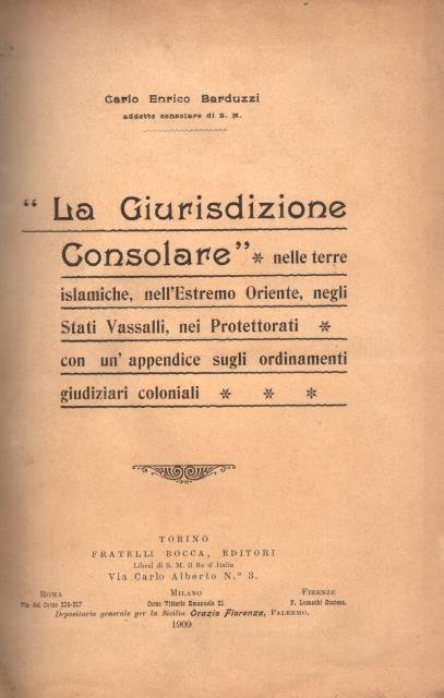 LA GIURISDIZIONE CONSOLARE NELLE TERRE ISLAMICHE, NELL'ESTREMO ORIENTE, NEGLI STATI VASSALLI, NEI PROTETTORATI. Con un'appendice sugli ordinamenti giudiziari coloniali.