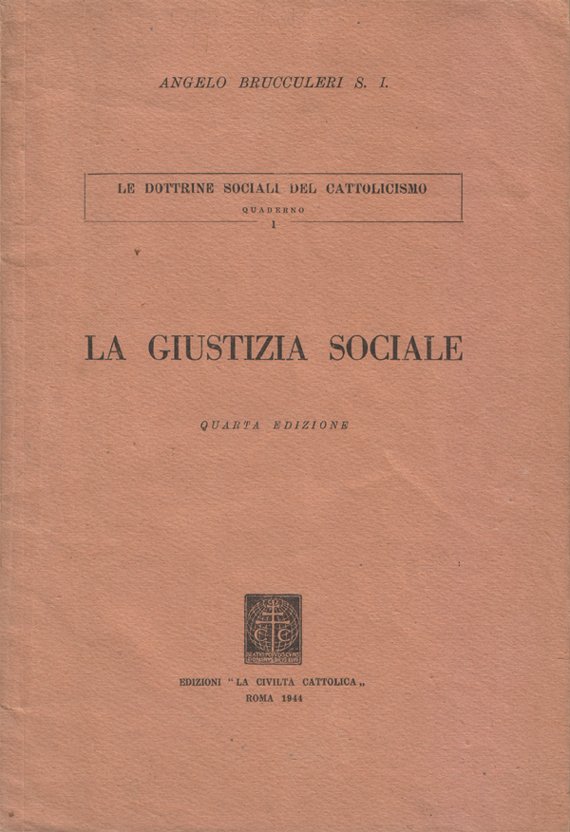 In-8°, pp. 49, (3), copertina editoriale. Ben conservato. Quaderno I della collana "Dottrine Sociali del Cattolicesimo". Indice: Cap. I. Nozioni generali sulla giustizia; Cap. II. La giustizia sociale; Cap. III. La giustizia sociale nei documenti pontifici; Cap. IV. La giustizia sociale nei suoi rapporti con le altre virtù; Bibliografia.