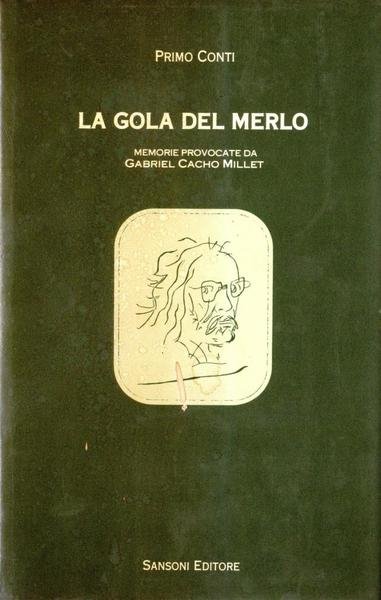 La gola del merlo, prima edizione ottobre 1983, pp 558, formato 13,5 x 20,8.Memorie di Primo Conti provocate da Gabriel Cacho Millet, copertina rigida verde con scritte in bianco, sovraccoperta lucida verde. Pagine leggermente brunite. <BR>Tra cronaca e storia, queste memorie di uno dei protagonisti della cultura italiana del nostro secolo (unico testimone superstite della grande stagione futurista) s'aggirano nell'autobiografia ma costantemente la superano per la ricca serie di rapporti, di incontri, di corrispondenze con gli altri protagonisti massimi non solo italiani , se è vero che ad ogni pagina si incontrano i nomi di Marinetti o di Boccioni, di Picasso o di Apollinaire, di Ungaretti o di Guillén, in un diagramma che va dai primissimi anni del Novecento al tempo attuale. Il libro è scritto a due mani: Cacho Millet, poeta, romanziere, commediografo, col suo registratore provoca le memorie di Conti, non ne è lo storico ma l'interlocutore.