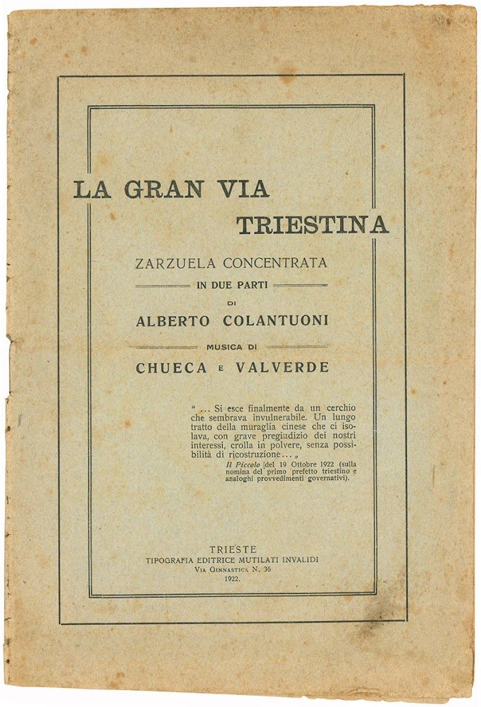 La Gran Via Triestina. Zarzuela concentrata in due parti ... Musica di Chueca e Valverde.