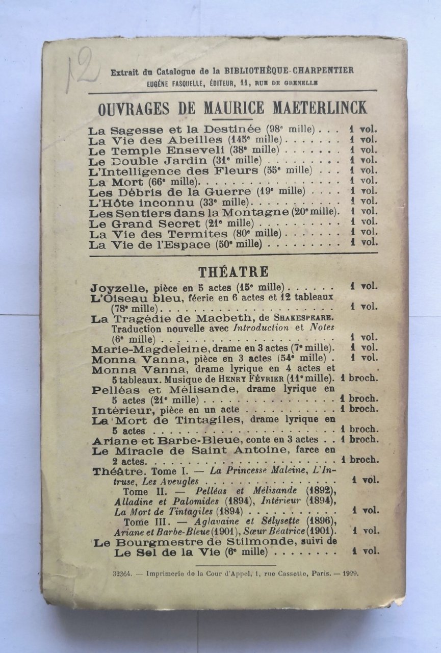 LA GRANDE FEERIE di Maurice Maeterlinck 1929 Bibliotheque Charpentier Libro
