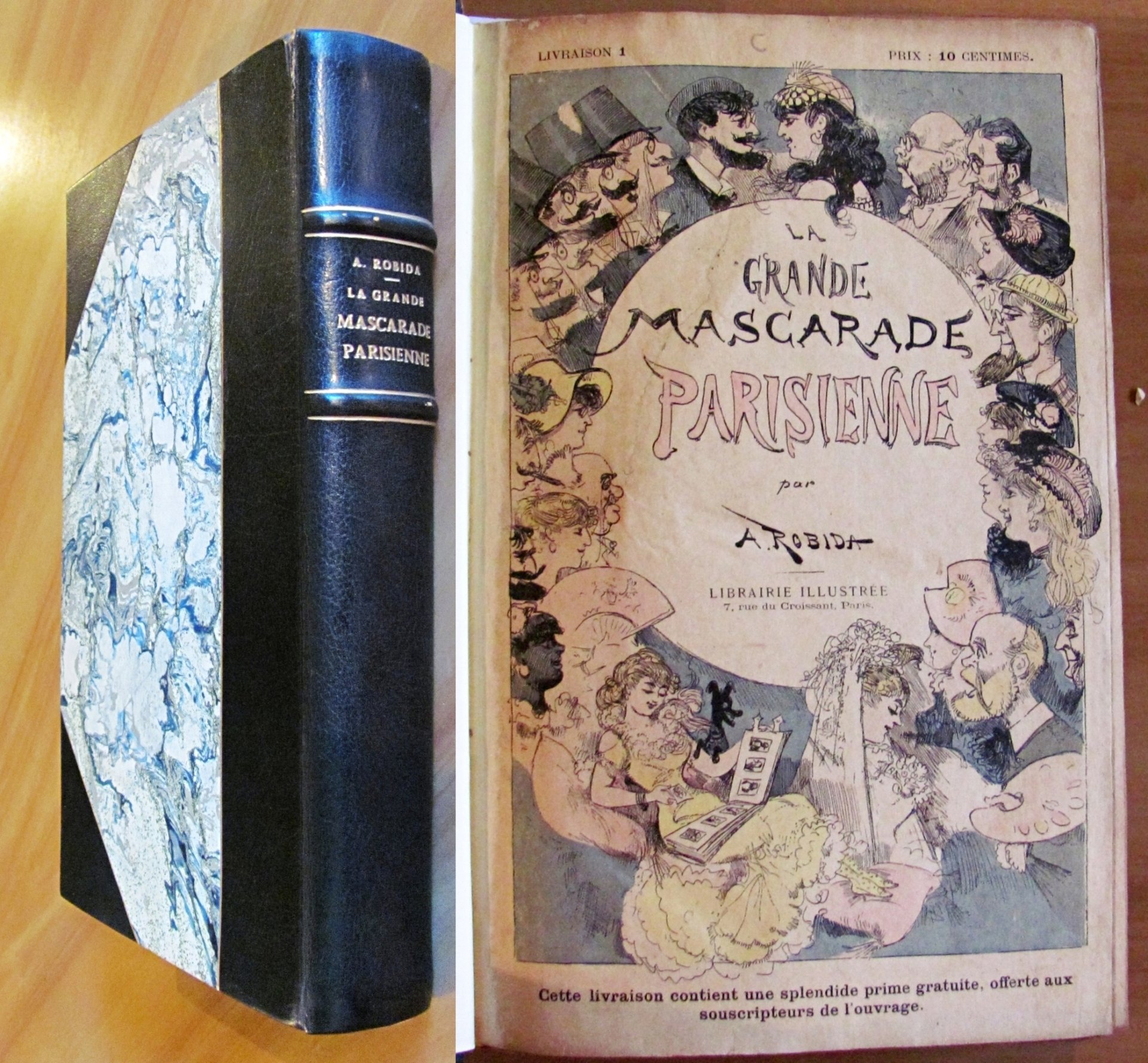 Parties 1/5 - Completo. Moltissime illustrazioni in b/n e a colori n.t e tavole a colori, di cui una più volte ripiegata, f.t. di Albert Robida. Librairie Illustrée - Paris, s.d. ma 1880. Rilegatura coeva in mezza pelle, con nervi e titolli in oro al dorso, che presenta un lieve distacco in alto alla cerniera anteriore. Barbe al margine esterno delle pagine. 19x29; pp.800. Completo, Raro e in Buonissimo stato.