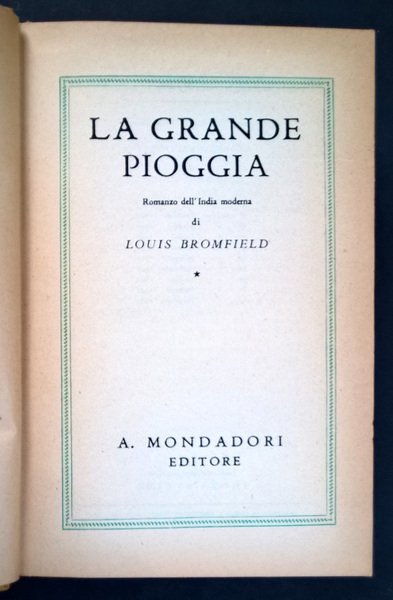 La grande pioggia. Romanzo dell'India moderna di Louis Bromfield. 9° edizione.