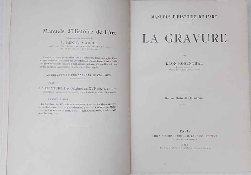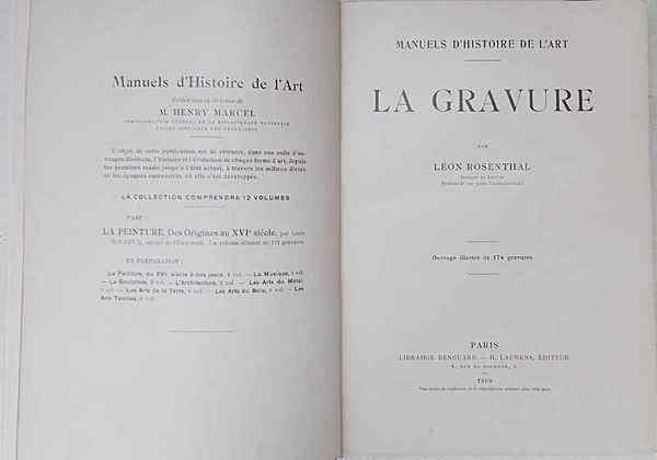 In 8° (cm. 25,5 x 18); pagg. (4), IV, 472; con 174 illustraz. n.t.; elegante legatura in mezzo marocchino blu con punte, titoli oro e piccoli nervi al dorso; taglio superiore in oro. Brossura origin. con decori conservata all'interno. Bel ex libris inciso. VG+. **Prima edizione. Volume della collana "Manuels d'Histoire de l'Art" publiés sous la direction de M. Henry Marcel administrateur général de la Bibliotheque Nationale, ancien directeur des Beaux-Arts.